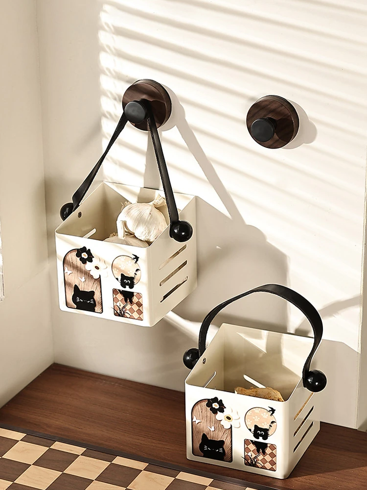 ネギ生姜ニンニク収納ラック - 多機能壁掛けキッチン収納ボックス、穴あけ不要!小型ハンギングバスケットで果物や野菜をスッキリ整理!