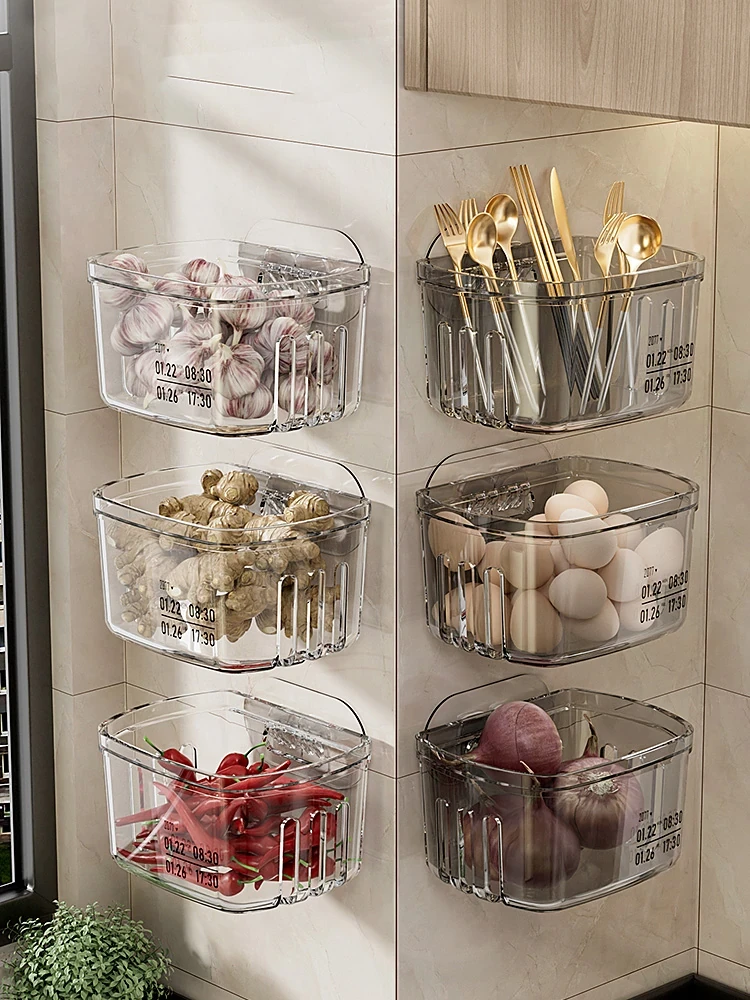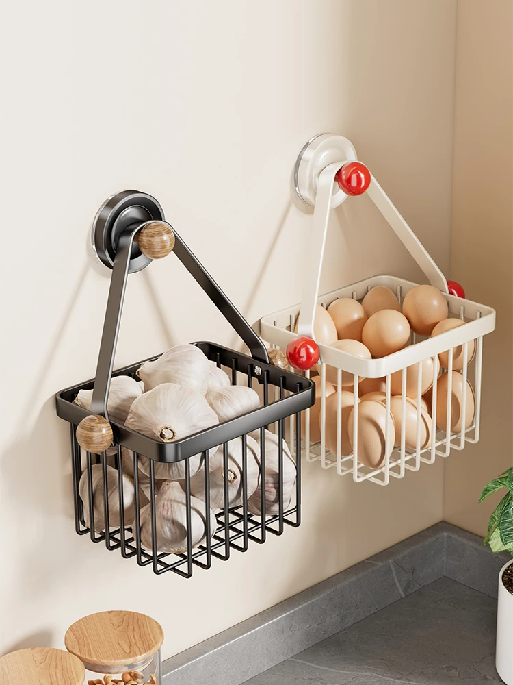 吸盤付きネギ・ショウガ・ニンニク収納ボックス|キッチンの必需品!壁掛け収納でスペースを有効活用!便利なショウガ・ニンニク用バスケットで、すっきり整理整頓!