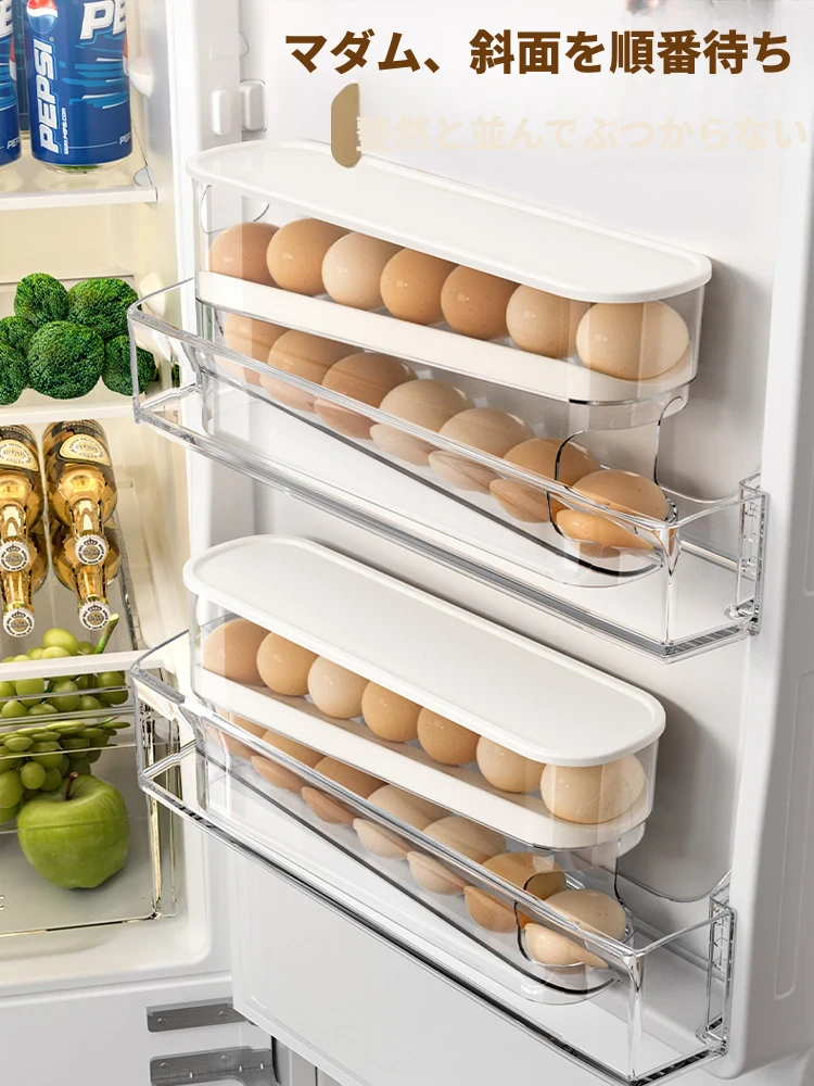 食品安全基準を満たした!自動回転式卵収納ボックス - 冷蔵庫のサイドドアに最適!人気の卵ラックで、いつでも新鮮な卵を簡単に取り出せます。おしゃれで便利なキッチンアイテム、ぜひお試しあれ!